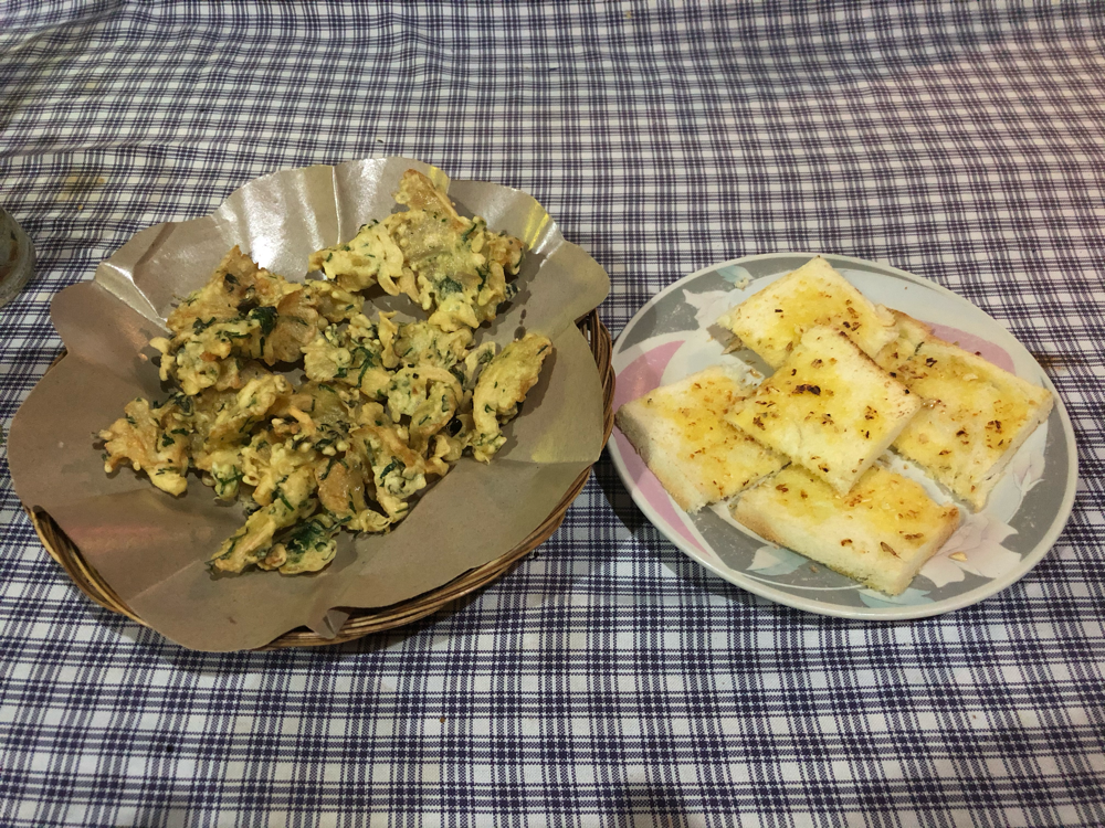 Es gab super leckere frittierte Pilze und Knoblauchbrot 😋
