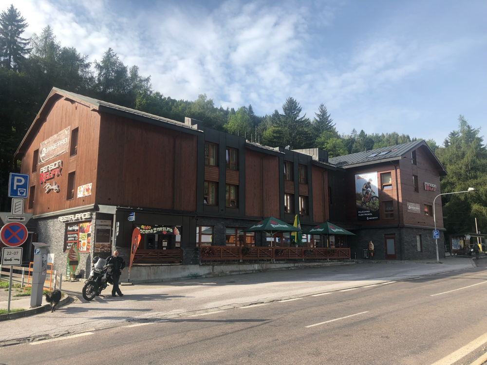 Tag 5 von 12 Gefahrene Kilometer: 340 km Temperaturen zwischen 13 und 20 Grad, von allem was, außer Schnee und Hagel Nach einem äußerst leckerem Frühstück haben wir mit unseren letzten 1240 CZK (tschechischen Kronen) die Hotelrechnung von 1233 CZK beglichen und waren somit „pleite“. Es wurde Zeit das Land zu verlassen. 😂 Bei Nieselregen gings noch mal an die Rennstrecke in Brno. Ein paar Moppedfahrer drehten ihre Runden. Sonst war nichts los...