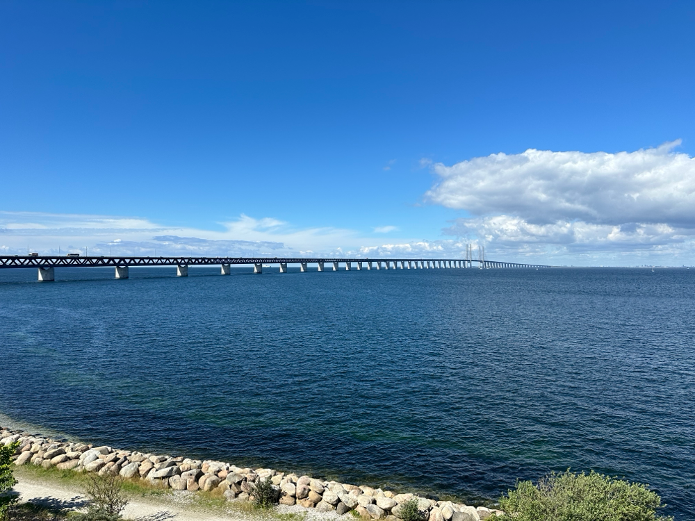 Tag 25 von 30 Gefahrene Kilometer: 71 Temperaturen zwischen 18 und 24 Grad, sonnig Heute bleiben wir in Malmø, denn wir haben unser Hotel für zwei Nächte gebucht. Nach einem sehr leckeren schwedischen Frühstück sind wir zur Øresundbrücke gefahren. Da unser Rückweg nicht über Dänemark führt, wollten wir uns diese wenigstens anschauen.